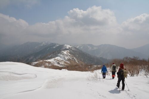 稜線の雲は消えどこまでも続く青空が続きますが、風はまだ強い。 今日はあそこの避難小屋でお昼にしますか。 あの小屋には、このあいだ遭難者が3日間逃げ込んで、ヘリで救出された場所なんですって。 十分な準備と経験と判断で、いろんな人に迷惑のかからな…