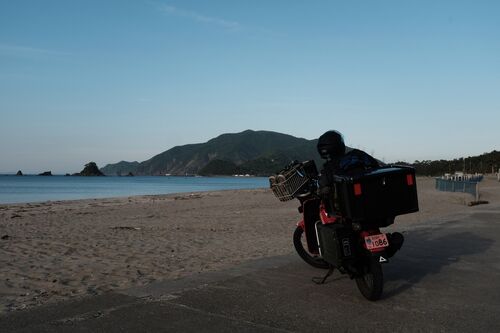 砂から家を守る防風林を抜ける道 その奥に行ったら浜に出れるよ。 垣根の向こうで庭の手入れをしていたおばさんが声をかけてくれた。 ありがとうございます。 若狭の湾内、静かな波音が響く 浜辺で本を読む人 散歩をする人 海と人が近いいい場所です。 日が…